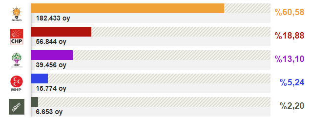 Son genel seçimlerde (1 Kasım 2015) İstanbul, Sultangazi oy oranları şu şekilde dağılmıştı: